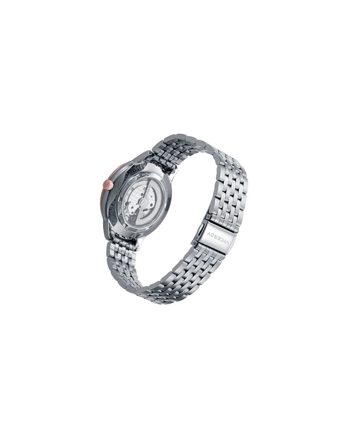 Reloj caja bicolor acero e Ip rosa con cristal zafiro 5 atm y brazalete de acero con movimiento automático
