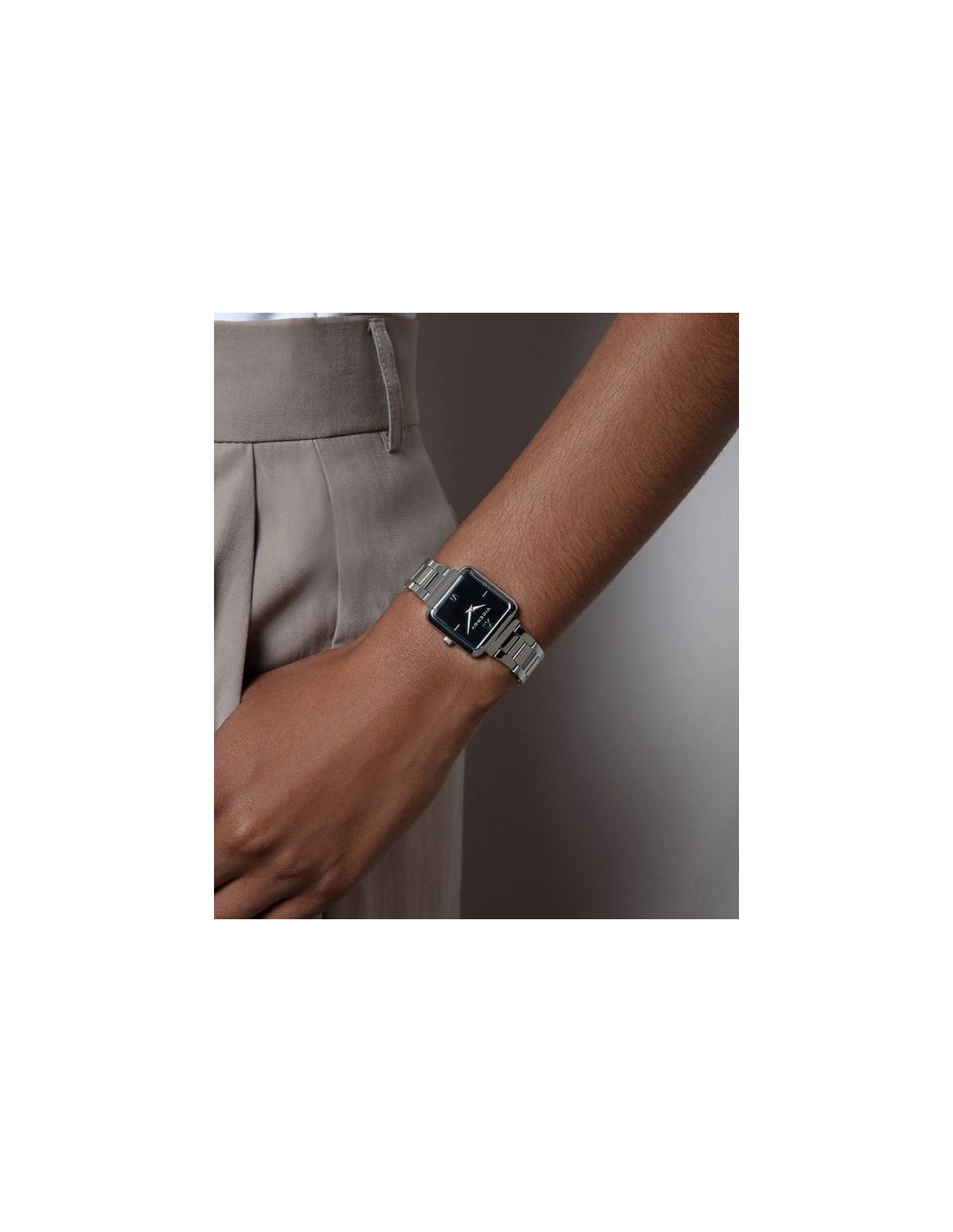 Este reloj de mujer de dos agujas presenta un diseño clásico y sofisticado. La caja y el brazalete de acero ofrecen durabilidad y un estilo atemporal. La elegante esfera negra, decorada con números romanos, añade un toque de distinción, mientras que las agujas horarias en color plata complementan el diseño con un acabado refinado. El cristal mineral proporciona protección y resistencia, haciendo de este reloj el accesorio ideal para la mujer que busca una pieza que combine funcionalidad y elegancia clásica en cualquier ocasión
